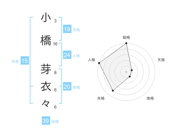 小橋 芽衣々さんの外格は15画の4点!