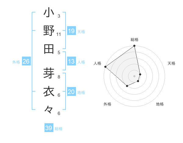 小野田 芽衣々さんを姓名の画数から五運を鑑定