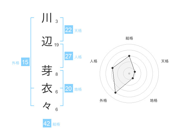 川辺 芽衣々さんを姓名の画数から五運を鑑定