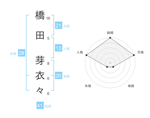 橋田 芽衣々さんの総格は41画の5点