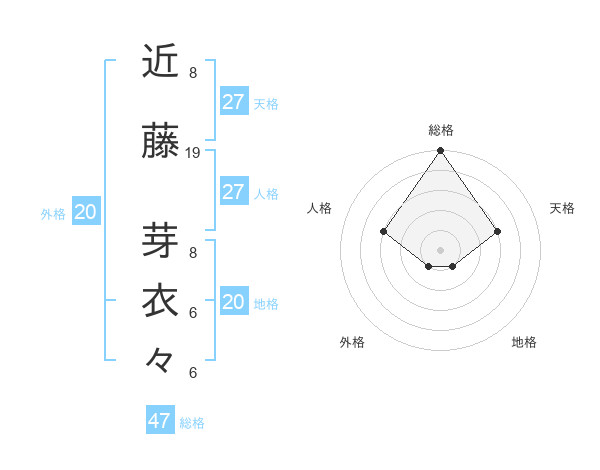 近藤 芽衣々さんを姓名の画数から五運を鑑定