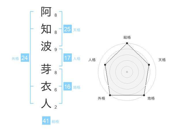 阿知波 芽衣人さんを姓名の画数から五運を鑑定