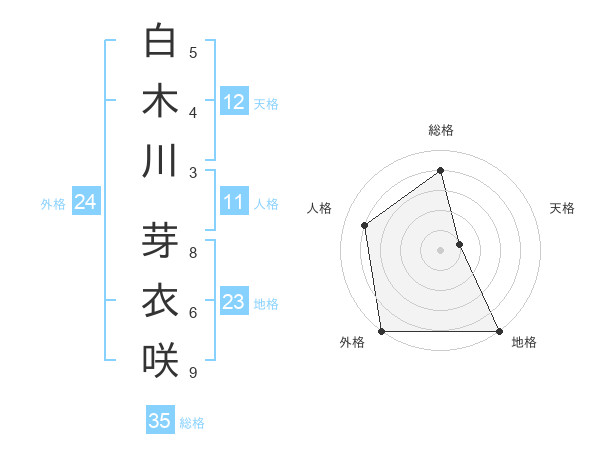 白木川 芽衣咲さんの総格は35画の4点!