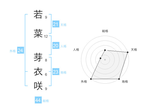 若菜 芽衣咲さんを姓名の画数から五運を鑑定