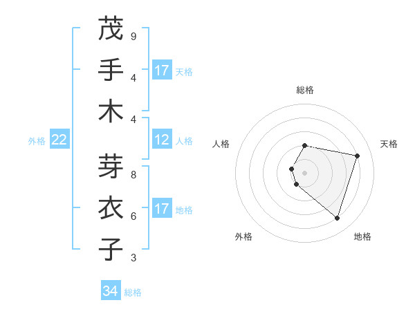 茂手木 芽衣子さんを姓名の画数から五運を鑑定