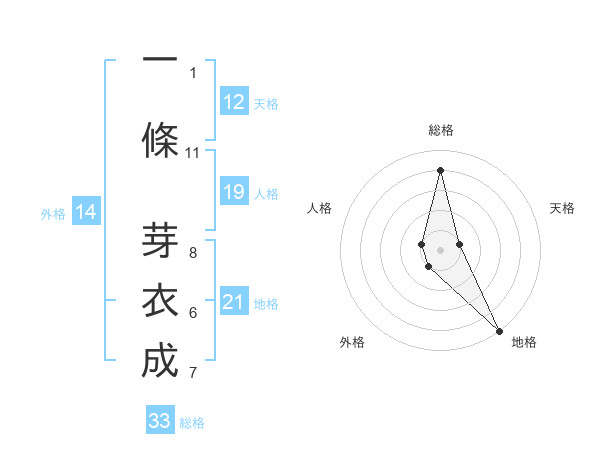 一條 芽衣成さんを姓名の画数から五運を鑑定