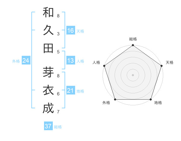 和久田 芽衣成さんを姓名の画数から五運を鑑定