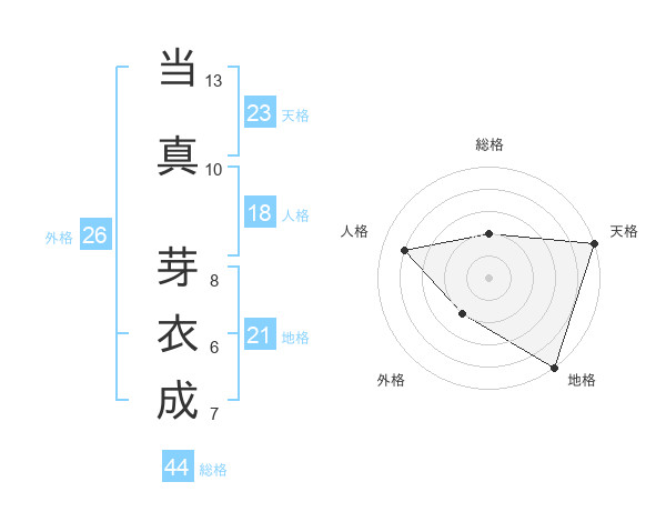 当真 芽衣成さんの天格は23画の5点!