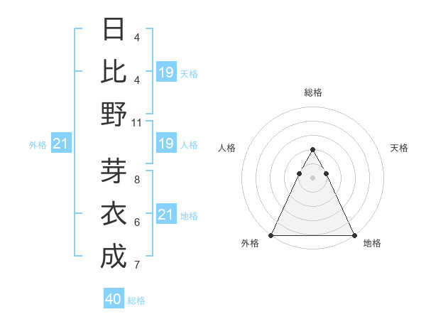 日比野 芽衣成さんの外格は21画の5点!