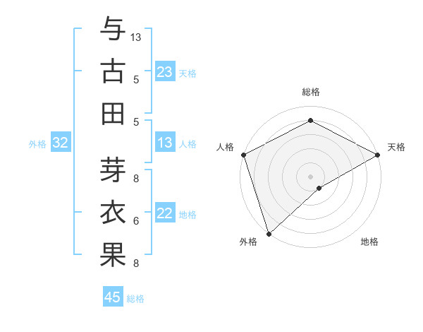 与古田 芽衣果さんを姓名の画数から五運を鑑定