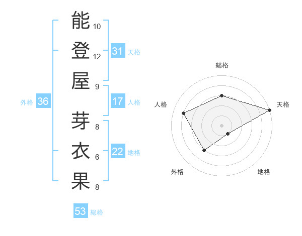 能登屋 芽衣果さんを姓名の画数から五運を鑑定