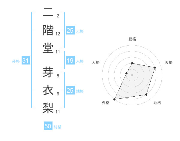 二階堂 芽衣梨さんの総格は50画の2点