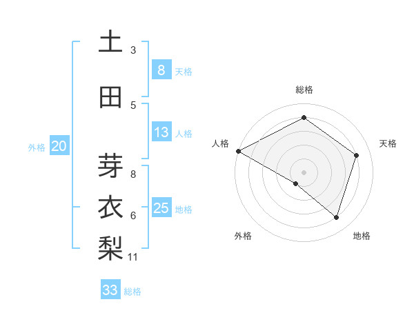 土田 芽衣梨さんを姓名の画数から五運を鑑定