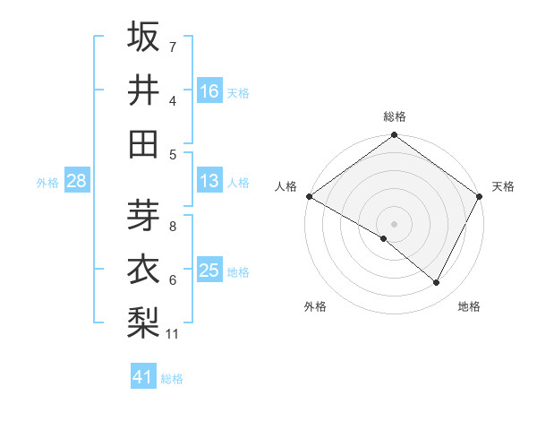 坂井田 芽衣梨さんの総格は41画の5点!