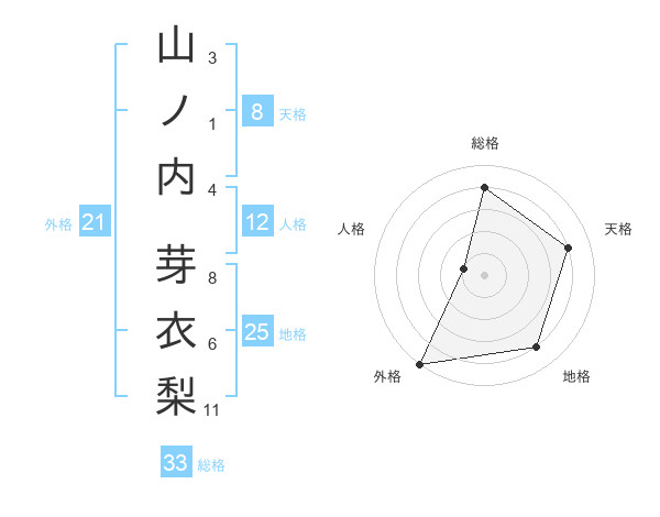 山ノ内 芽衣梨さんの天格は8画の4点!