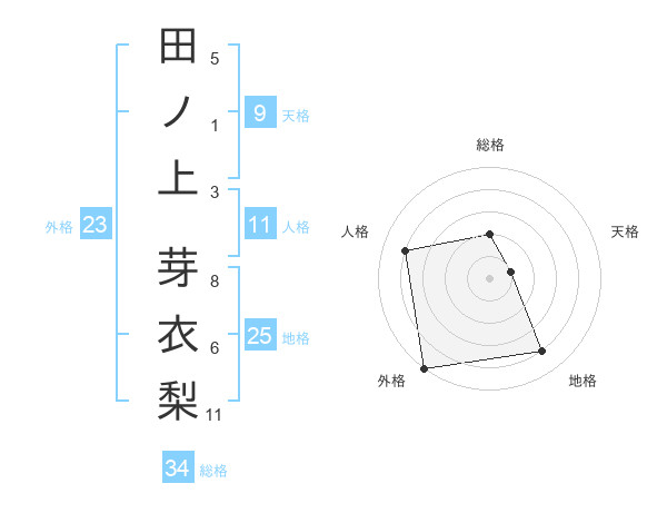 田ノ上 芽衣梨さんの外格は23画の5点!