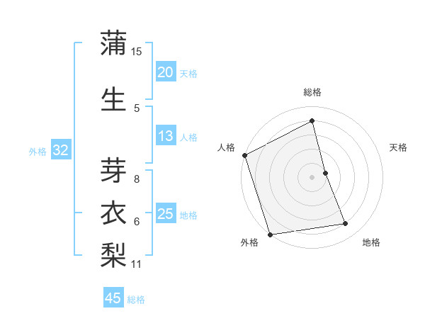 蒲生 芽衣梨さんを姓名の画数から五運を鑑定
