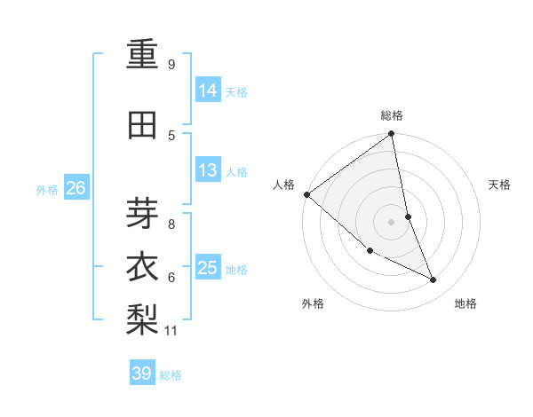 重田 芽衣梨さんの天格は14画の1点!