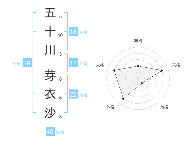 五十川 芽衣沙さんを姓名の画数から五運を鑑定