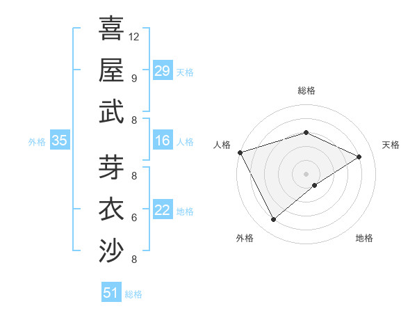 喜屋武 芽衣沙さんの外格は35画の4点!