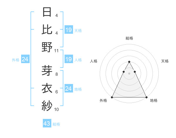 日比野 芽衣紗さんを姓名の画数から五運を鑑定