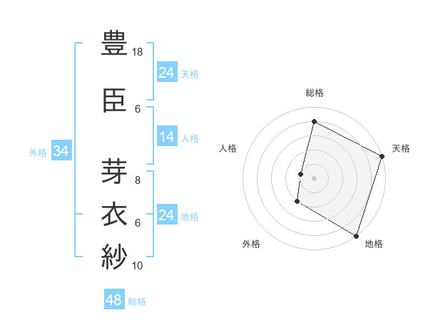 豊臣 芽衣紗さんの総格は48画の4点!