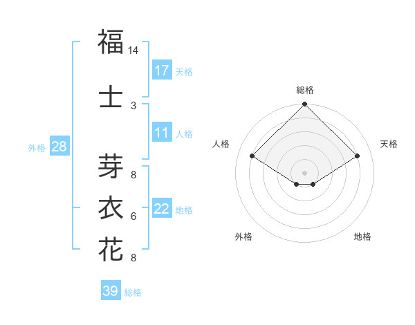 福士 芽衣花さんの地格は22画の1点!