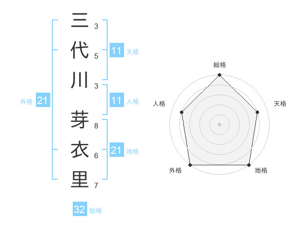 三代川 芽衣里さんを姓名の画数から五運を鑑定