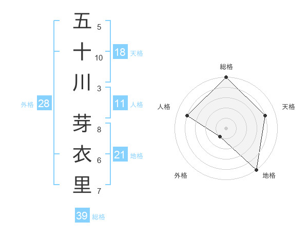 五十川 芽衣里さんを姓名の画数から五運を鑑定