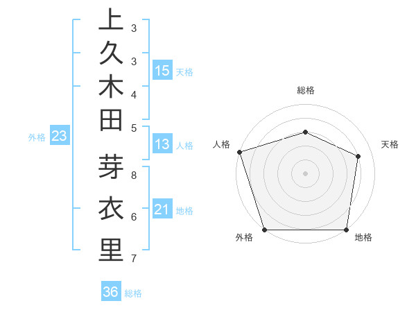 上久木田 芽衣里さんを姓名の画数から五運を鑑定