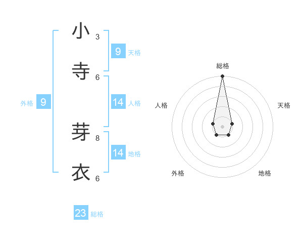 小寺 芽衣さんの総格は23画の5点!