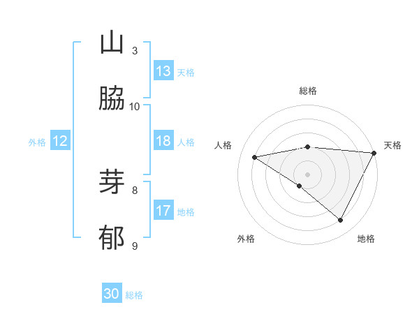 山脇 芽郁さんの総格は30画の2点!