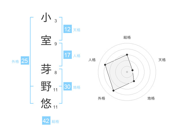 小室 芽野悠さんを姓名の画数から五運を鑑定