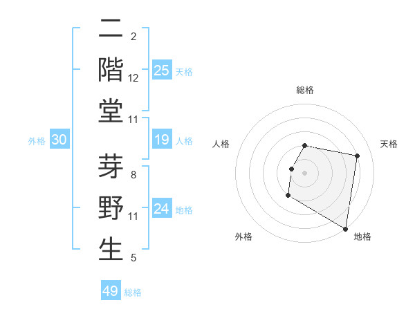 二階堂 芽野生さんを姓名の画数から五運を鑑定