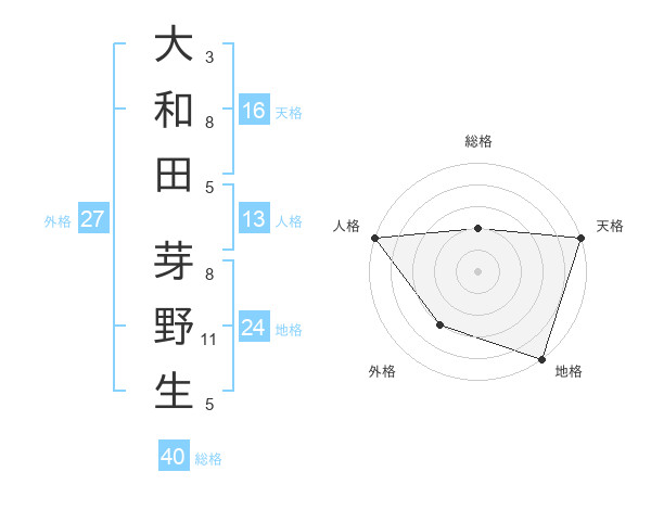 大和田 芽野生さんを姓名の画数から五運を鑑定