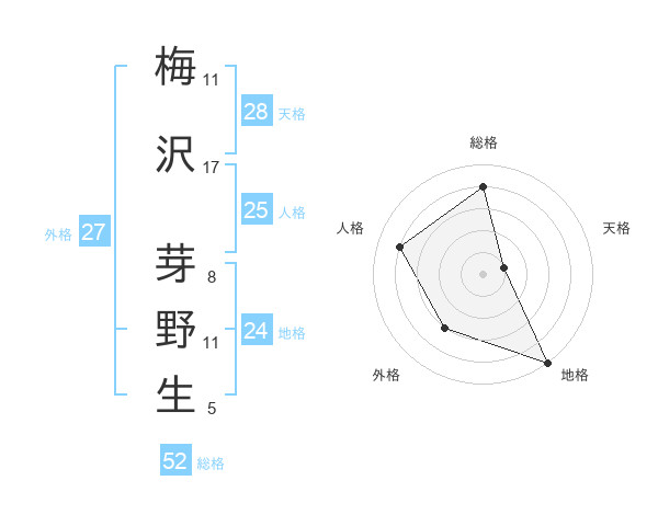 梅沢 芽野生さんを姓名の画数から五運を鑑定