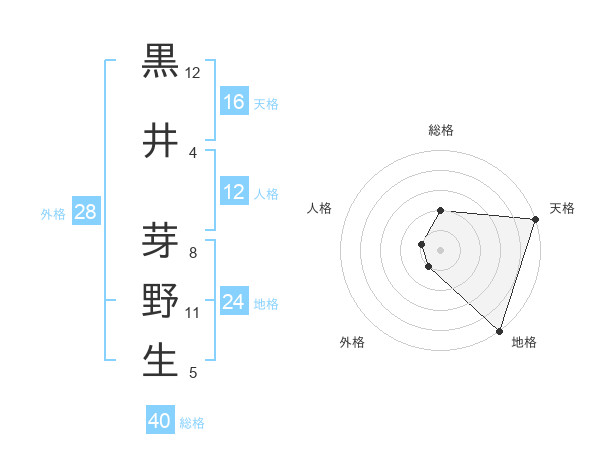 黒井 芽野生さんを姓名の画数から五運を鑑定