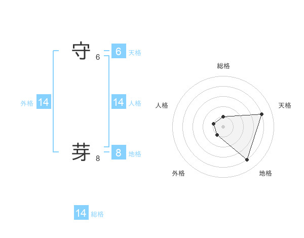 守 芽さんの総格は14画の1点!