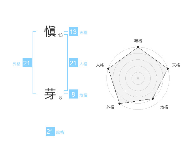 愼 芽さんの人格は21画の5点!