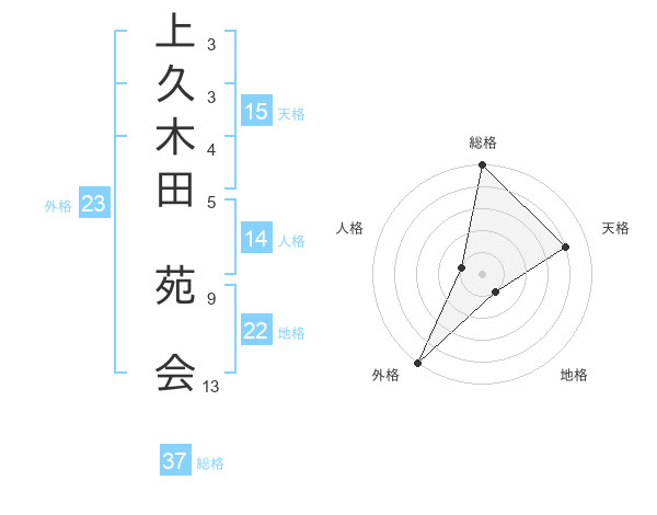 上久木田 苑会さんを姓名の画数から五運を鑑定