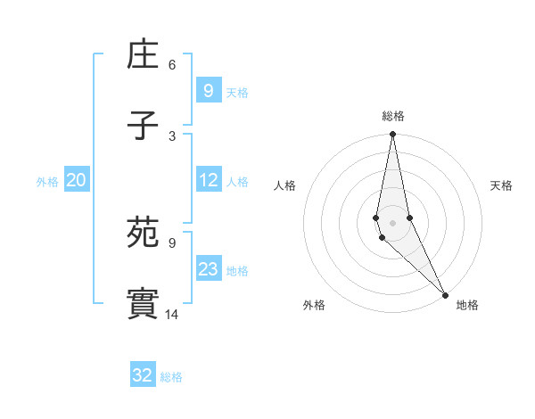 庄子 苑實さんの総格は32画の5点!