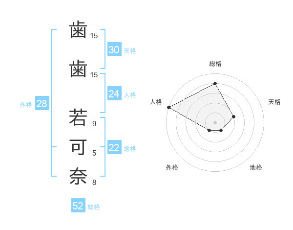 歯歯 若可奈さんを姓名の画数から五運を鑑定