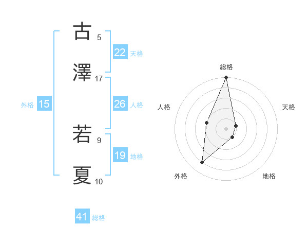 古澤 若夏さんの総格は41画の5点!