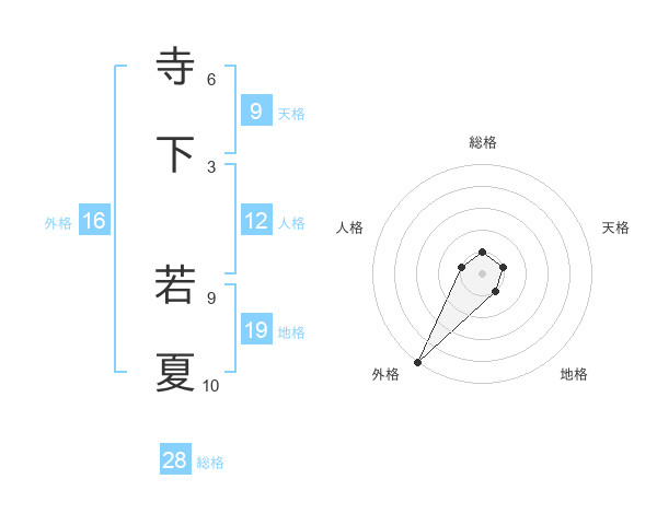 寺下 若夏さんを姓名の画数から五運を鑑定