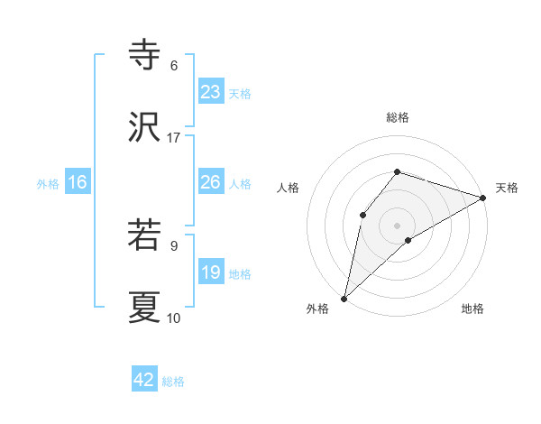寺沢 若夏さんを姓名の画数から五運を鑑定