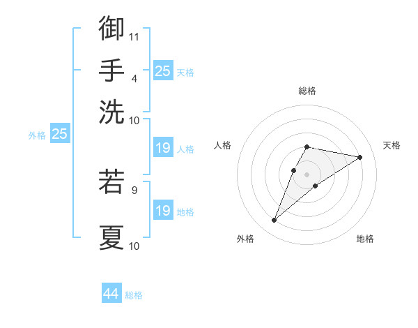 御手洗 若夏さんの総格は44画の2点!