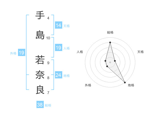 手島 若奈良さんを姓名の画数から五運を鑑定