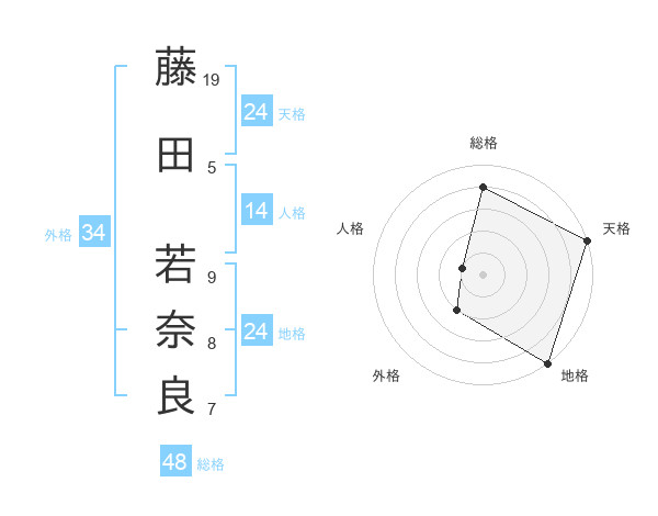 藤田 若奈良さんの総格は48画の4点