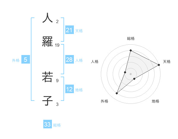 人羅 若子さんの天格は21画の5点!