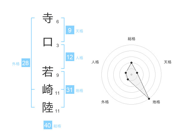 寺口 若崎陸さんを姓名の画数から五運を鑑定